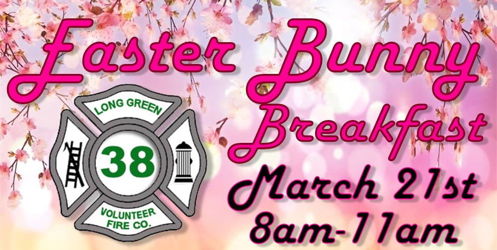 Long Green Volunteer Fire Company 4506 Long Green Road, Glen ArmBreakfast with the Easter Bunny is BACK! Saturday April 2nd our upper hall 9am to 11:30am. We're looking forward to seeing everyone!! This is a free event, however donations are always welcome.